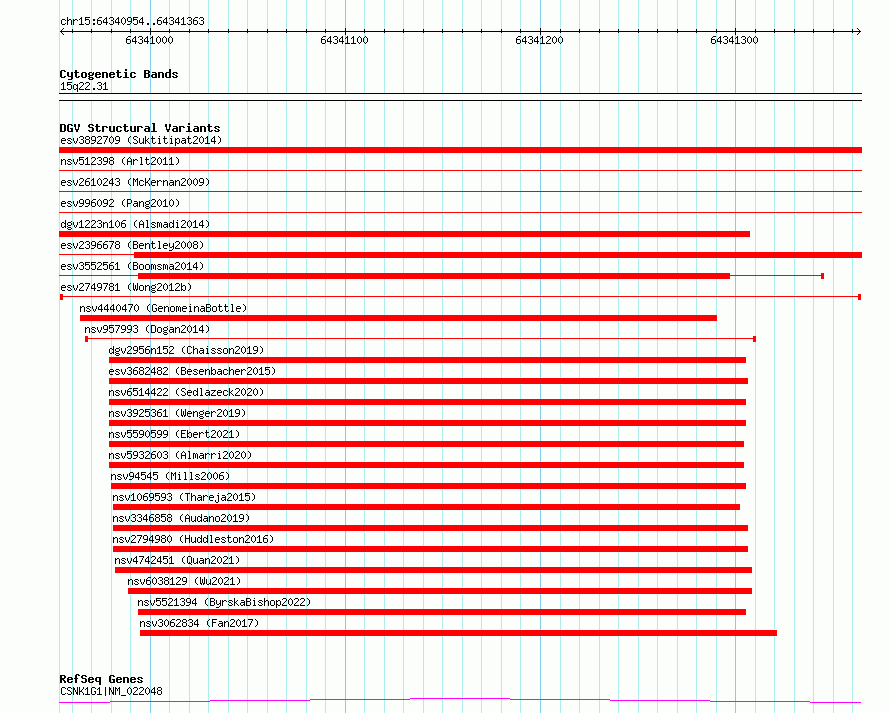 Variant DetailsVariant: esv2749781 | Internal ID | 10330751 | | Landmark | | | Location Information | | | Cytoband | 15q22.31 | | Allele length | | Assembly | Allele length | | hg38 | 410 | | hg19 | 410 |