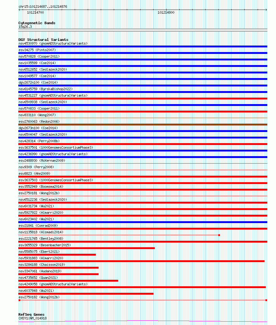 Variant DetailsVariant: esv2750182| Internal ID | 10331152 | | Landmark | | | Location Information | | | Cytoband | 15q26.3 | | Allele length | | Assembly | Allele length | | hg38 | 190 | | hg19 | 190 |