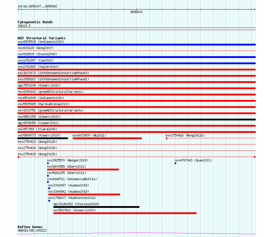 Variant DetailsVariant: esv2750415| Internal ID | 10331385 | | Landmark | | | Location Information | | | Cytoband | 16p13.3 | | Allele length | | Assembly | Allele length | | hg38 | 186 | | hg19 | 186 |