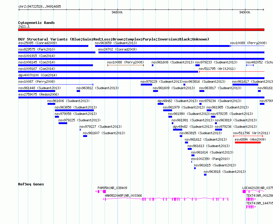Variant DetailsVariant: esv2756938 | Internal ID | 9979015 | | Landmark | | | Location Information | | | Cytoband | 2q11.1 | | Allele length | | Assembly | Allele length | | hg38 | 192141 | | hg19 | 192160 | | hg18 | 192160 | | hg17 | 192160 |