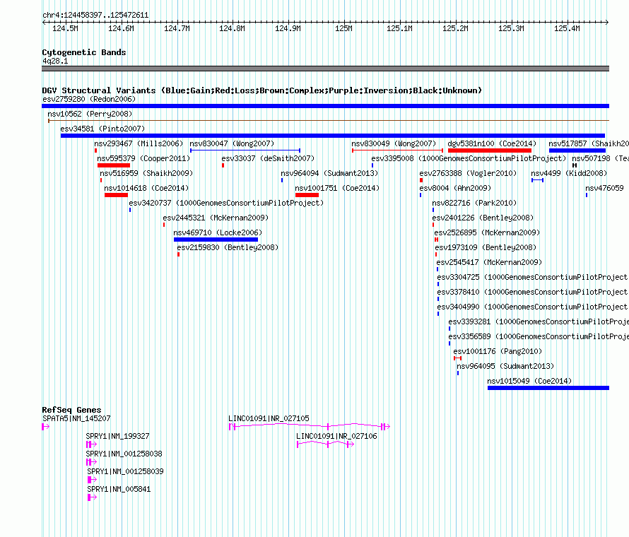 Variant DetailsVariant: esv2757080 | Internal ID | 9979157 | | Landmark | | | Location Information | | | Cytoband | 4q28.1 | | Allele length | | Assembly | Allele length | | hg38 | 1014215 | | hg19 | 1014215 | | hg18 | 1014215 | | hg17 | 1014215 |