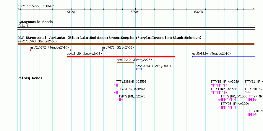 Variant DetailsVariant: esv2758903| Internal ID | 9981048 | | Landmark | | | Location Information | | | Cytoband | Yp11.2 | | Allele length | | Assembly | Allele length | | hg38 | 370654 | | hg19 | 370654 | | hg18 | 370654 | | hg17 | 370654 |