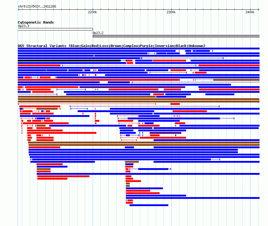 Variant DetailsVariant: esv2759582 | Internal ID | 9981727 | | Landmark | | | Location Information | | | Cytoband | 8p23.2 | | Allele length | | Assembly | Allele length | | hg38 | 397080 | | hg19 | 306247 | | hg18 | 306247 | | hg17 | 306247 |