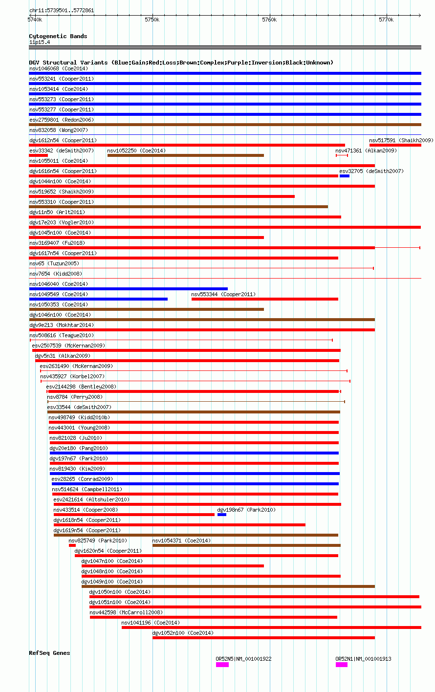 Variant DetailsVariant: esv2760180 | Internal ID | 10376488 | | Landmark | | | Location Information | | | Cytoband | 11p15.4 | | Allele length | | Assembly | Allele length | | hg38 | 33361 | | hg19 | 33361 | | hg18 | 33361 |