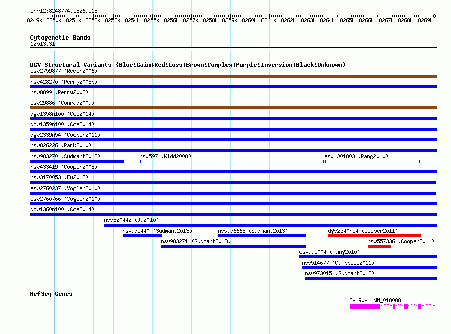 Variant DetailsVariant: esv2760237| Internal ID | 10376545 | | Landmark | | | Location Information | | | Cytoband | 12p13.31 | | Allele length | | Assembly | Allele length | | hg38 | 20745 | | hg19 | 20745 | | hg18 | 20745 |