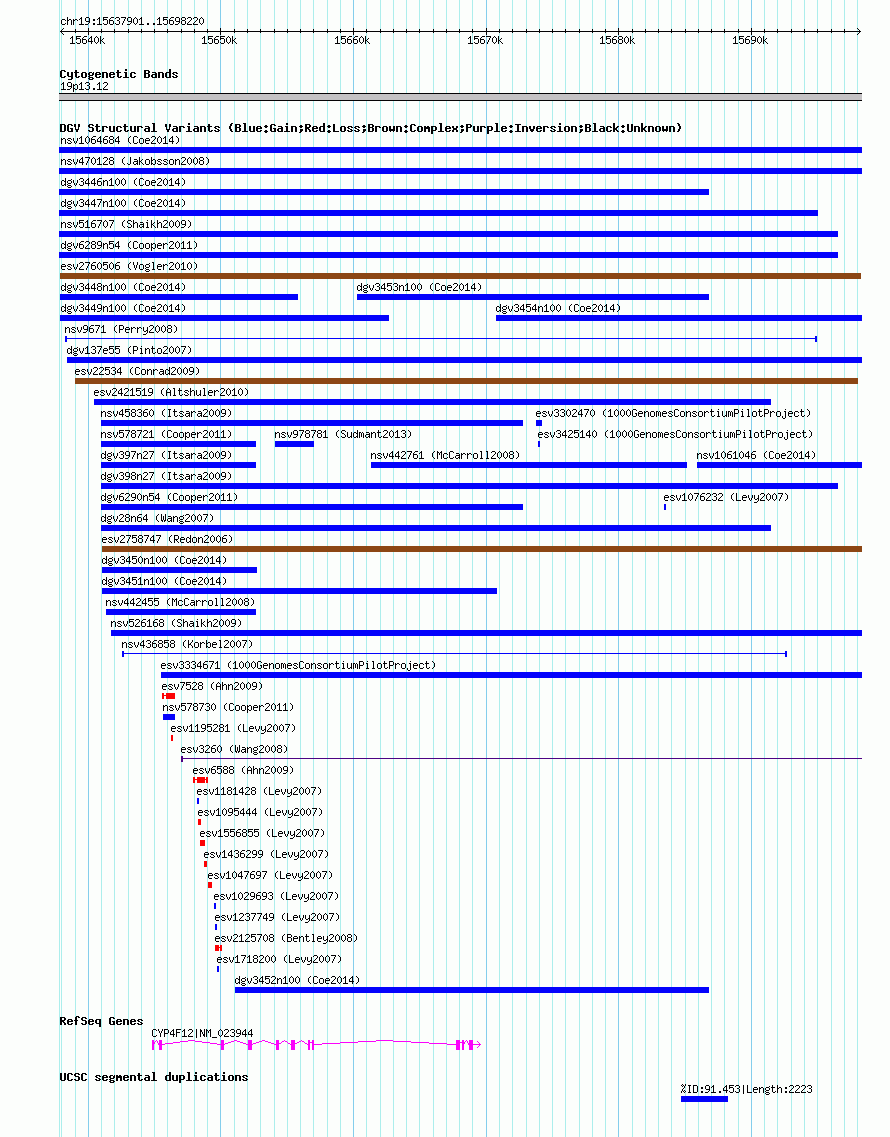 Variant DetailsVariant: esv2760506 | Internal ID | 10027869 | | Landmark | | | Location Information | | | Cytoband | 19p13.12 | | Allele length | | Assembly | Allele length | | hg38 | 60320 | | hg19 | 60320 | | hg18 | 60320 |