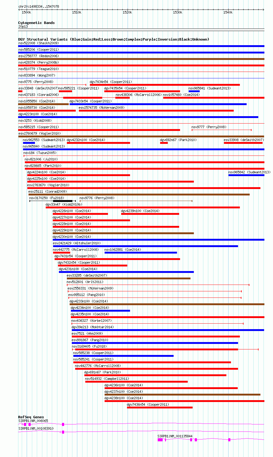 | | Variant Type | CNV gain+loss | | Copy Number | | | Allele State | | | Allele Origin | | | Probe Count | | | Validation Flag | | | Merged Status | M | | Merged Variants | | | Supporting Variants | essv7026120, essv7026112, essv7026159, essv7026162, essv7026121, essv7026152, essv7026161, essv7026167, essv7026175, essv7026169, essv7026168, essv7026136, essv7026130, essv7026172, essv7026171, essv7026138, essv7026114, essv7026108, essv7026110, essv7026124, essv7026156, essv7026143, essv7026140, essv7026137, essv7026127, essv7026173, essv7026141, essv7026142, essv7026176, essv7026119, essv7026115, essv7026165, essv7026126, essv7026145, essv7026153, essv7026158, essv7026109, essv7026132, essv7026113, essv7026157, essv7026125, essv7026118, essv7026154, essv7026160, essv7026139, essv7026123, essv7026170, essv7026148, essv7026135, essv7026163, essv7026147, essv7026116, essv7026134, essv7026117, essv7026129, essv7026164, essv7026150, essv7026149, essv7026146, essv7026174, essv7026151, essv7026128, essv7026131 | | Samples | RW_0635, RW_0071, RW_0148, RW_0526, RW_0105, RW_0158, RW_0196, RW_0099, RW_0093, RW_0606, RW_0187, RW_0146, RW_0189, RW_0658, RW_0319, RW_0096, RW_0640, RW_0334, RW_0271, RW_0503, RW_0216, RW_0113, RW_0017, RW_0112, RW_0544, RW_0293, RW_0519, RW_0639, RW_0023, RW_0576, RW_0227, RW_0002, RW_0296, RW_0211, RW_0029, RW_0664, RW_0257, RW_0281, RW_0129, RW_0571, RW_0307, RW_0578, RW_0308, RW_0166, RW_0543, RW_0013, RW_0048, RW_0232, RW_0589, RW_0132, RW_0164, RW_0215, RW_0154, RW_0070, RW_0306, RW_0652, RW_0361, RW_0209, RW_0234, RW_0266, RW_0084, RW_0139, RW_0047 | | Known Genes | SIRPB1 | | Method | Merging | | Analysis | Two different algorithms (PennCNV and Birdseye) were applied to detect CNVs. Only congruent CNV events regarding direction of effect that were detected by both algorithms were merged using the outer borders of the event in a first step. In a second step only CNVs that were detected in at least two individuals were merged into a CNVR. | | Platform | Merging | | Comments | | | Reference | Vogler_et_al_2010 | | Pubmed ID | 21179565 | | Accession Number(s) | esv2760679