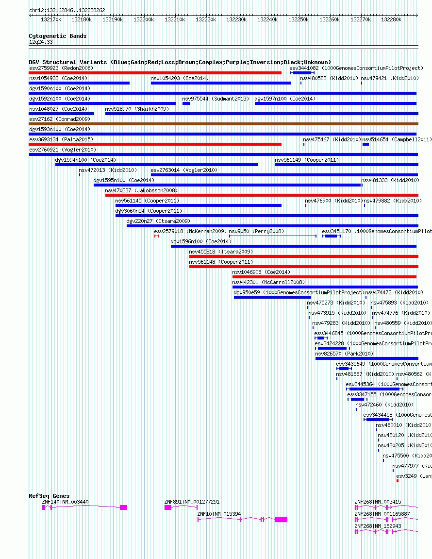 Variant DetailsVariant: esv2760921| Internal ID | 10377228 | | Landmark | | | Location Information | | | Cytoband | 12q24.33 | | Allele length | | Assembly | Allele length | | hg38 | 125417 | | hg19 | 125417 | | hg18 | 125417 |