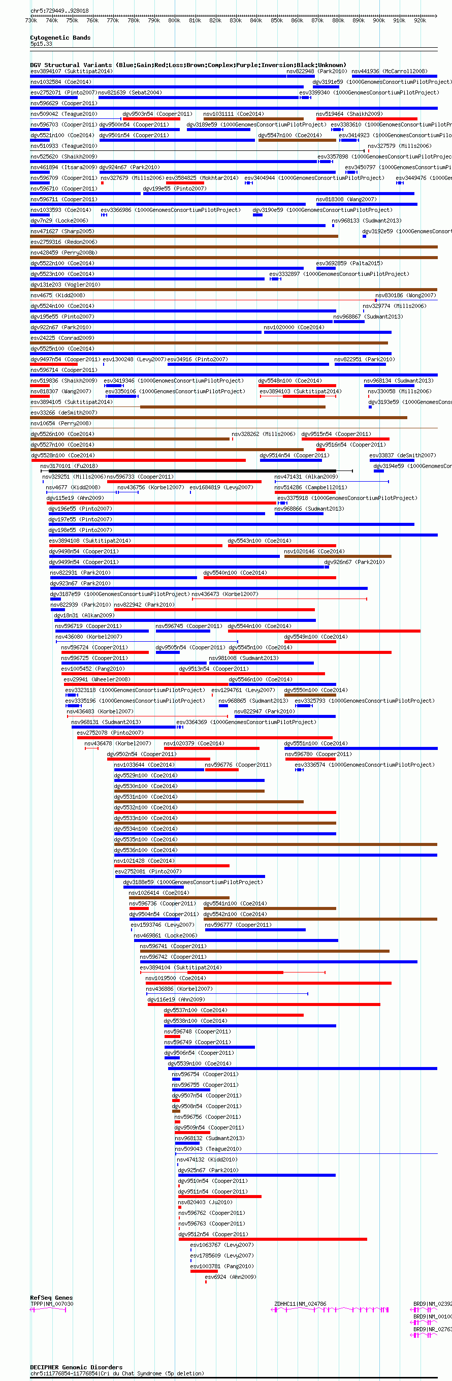 Variant DetailsVariant: esv2760933 | Internal ID | 10377240 | | Landmark | | | Location Information | | | Cytoband | 5p15.33 | | Allele length | | Assembly | Allele length | | hg38 | 198570 | | hg19 | 198570 | | hg18 | 198570 |