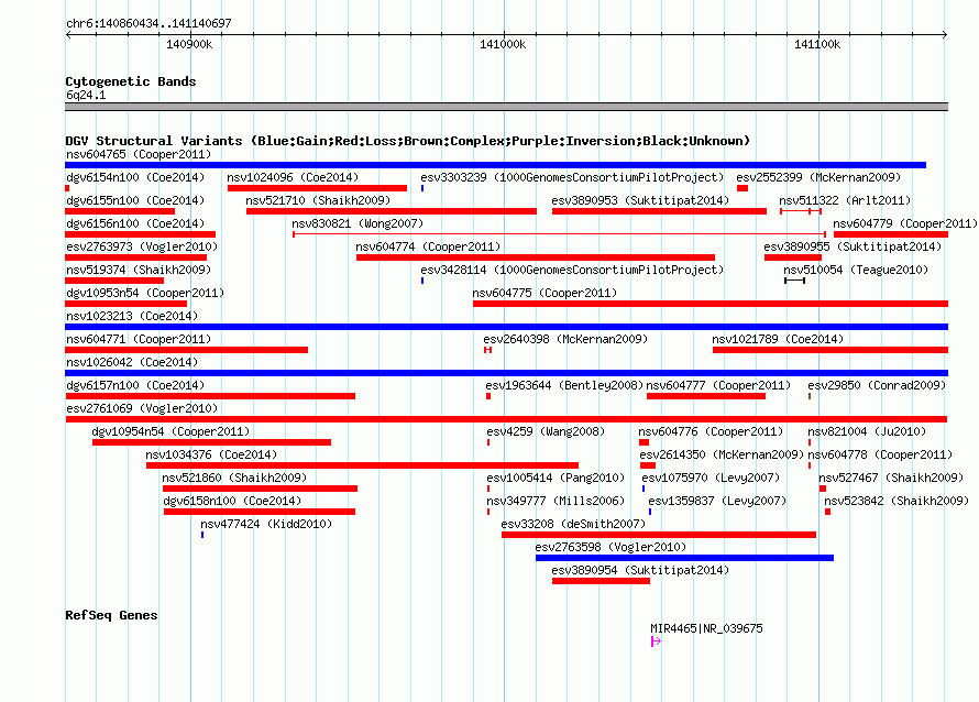 Variant DetailsVariant: esv2761069| Internal ID | 10377376 | | Landmark | | | Location Information | | | Cytoband | 6q24.1 | | Allele length | | Assembly | Allele length | | hg38 | 280264 | | hg19 | 280264 | | hg18 | 280264 |