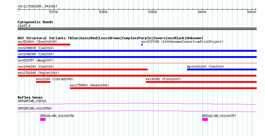 Variant DetailsVariant: esv2761646| Internal ID | 10028996 | | Landmark | | | Location Information | | | Cytoband | 11p15.4 | | Allele length | | Assembly | Allele length | | hg38 | 48119 | | hg19 | 48119 | | hg18 | 48119 |