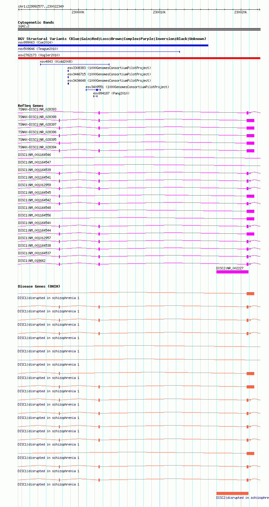 Known Genes | DISC1, DISC2, TSNAX-DISC1 |