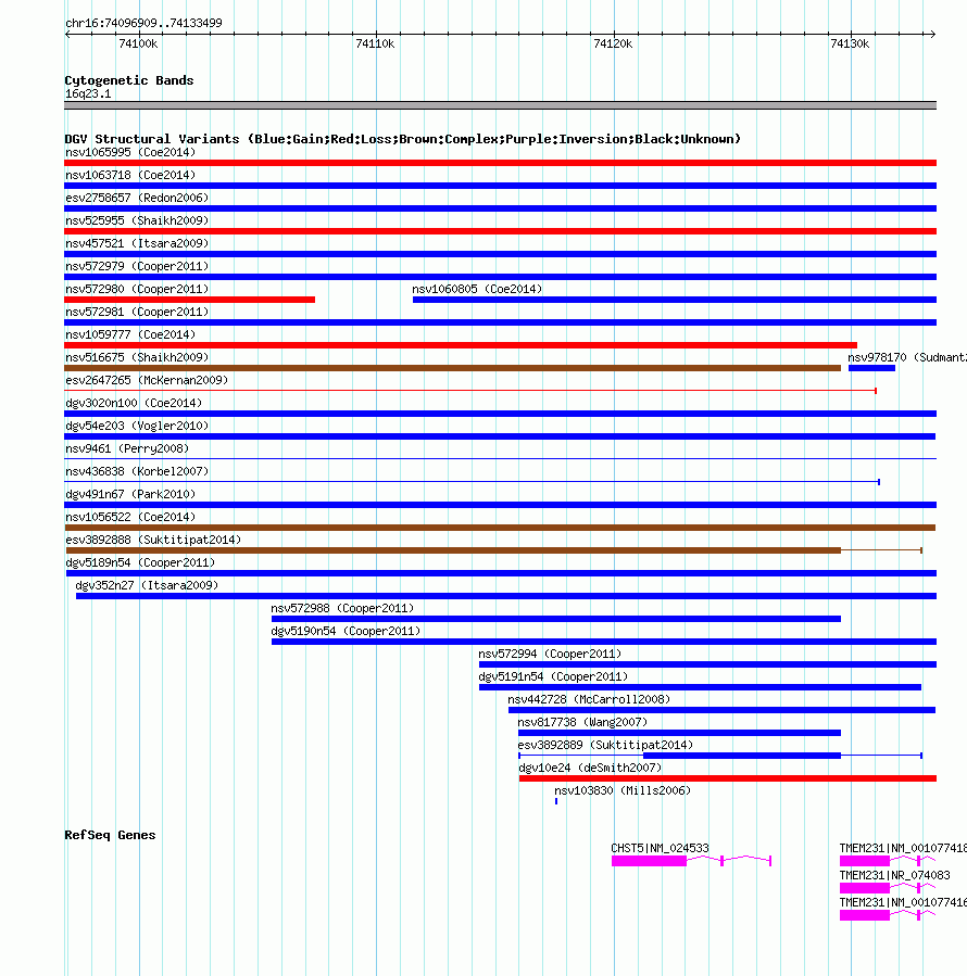 Variant DetailsVariant: esv2762311 | Internal ID | 10029661 | | Landmark | | | Location Information | | | Cytoband | 16q23.1 | | Allele length | | Assembly | Allele length | | hg38 | 36591 | | hg19 | 36591 | | hg18 | 36591 |