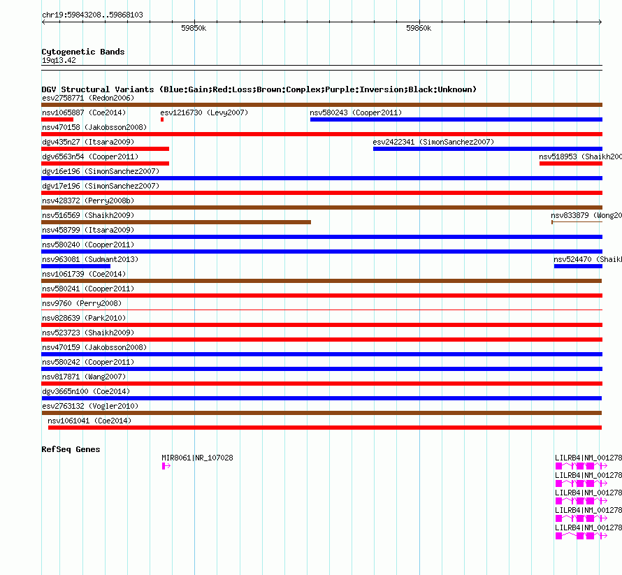 Variant DetailsVariant: esv2763132| Internal ID | 10375812 | | Landmark | | | Location Information | | | Cytoband | 19q13.42 | | Allele length | | Assembly | Allele length | | hg38 | 24896 | | hg19 | 24896 | | hg18 | 24896 |