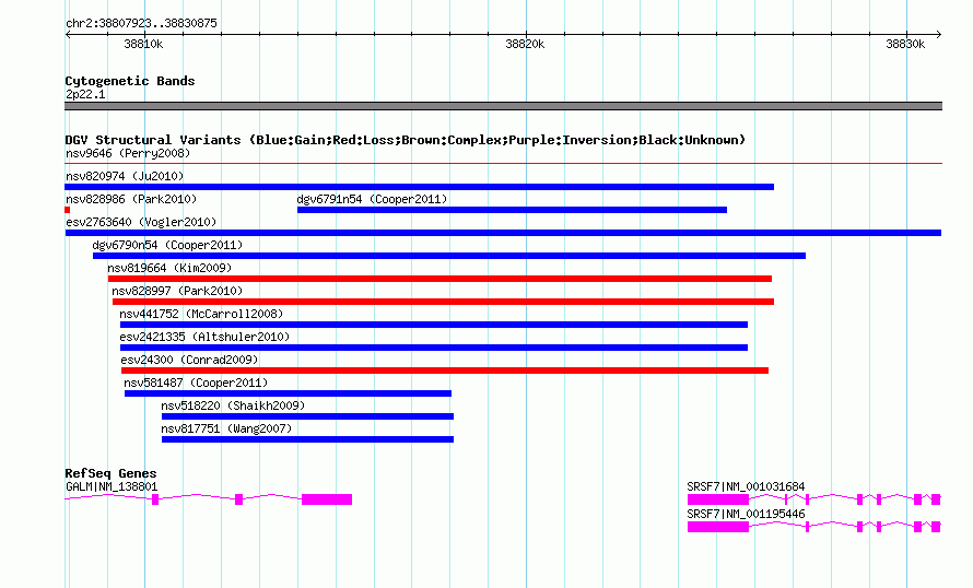 Variant DetailsVariant: esv2763640| Internal ID | 10030990 | | Landmark | | | Location Information | | | Cytoband | 2p22.1 | | Allele length | | Assembly | Allele length | | hg38 | 22953 | | hg19 | 22953 | | hg18 | 22953 |