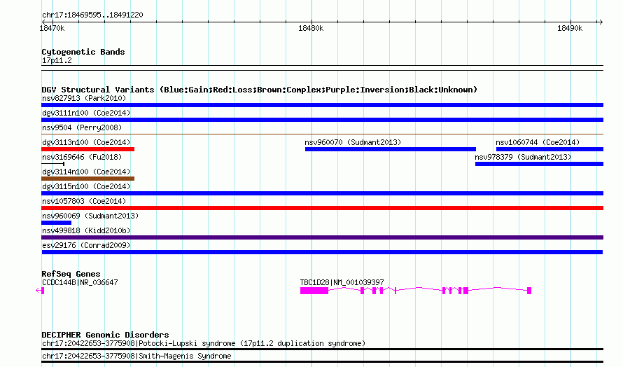 Variant DetailsVariant: esv29176 | Internal ID | 11393095 | | Landmark | | | Location Information | | | Cytoband | 17p11.2 | | Allele length | | Assembly | Allele length | | hg38 | 21626 | | hg19 | 21626 | | hg18 | 21626 |