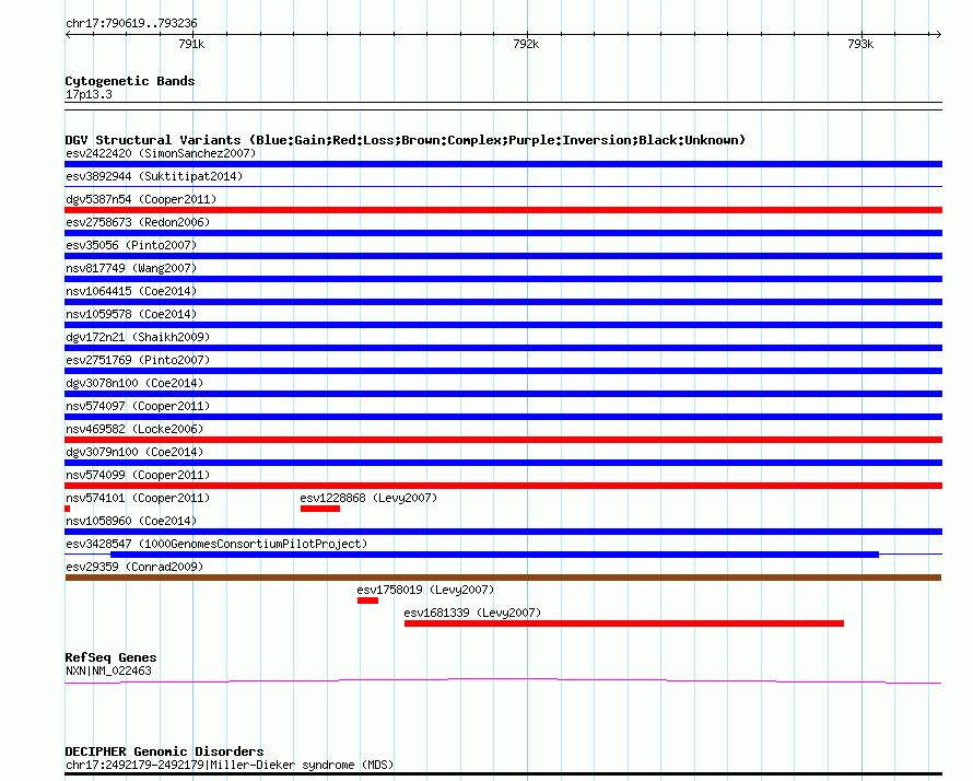 Variant DetailsVariant: esv29359 | Internal ID | 11393278 | | Landmark | | | Location Information | | | Cytoband | 17p13.3 | | Allele length | | Assembly | Allele length | | hg38 | 2618 | | hg19 | 2618 | | hg18 | 2618 |