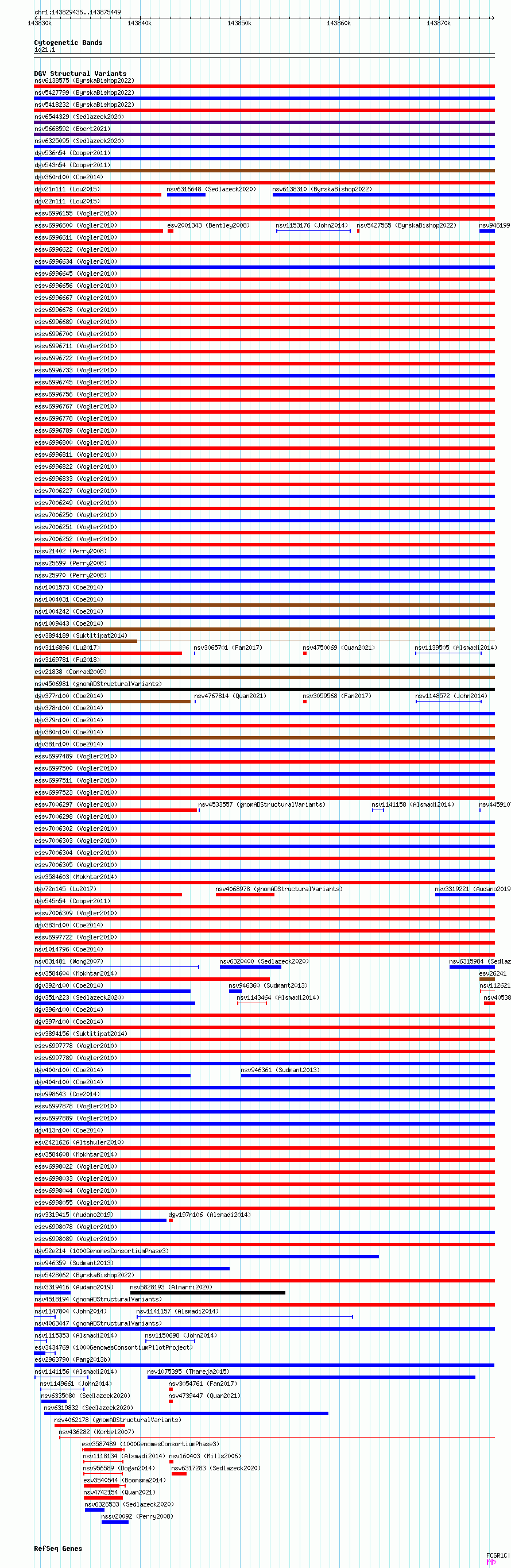 Variant DetailsVariant: esv2963790| Internal ID | 10983456 | | Landmark | | | Location Information | | | Cytoband | 1q21.2 | | Allele length | | Assembly | Allele length | | hg38 | 46014 | | hg19 | 46001 |