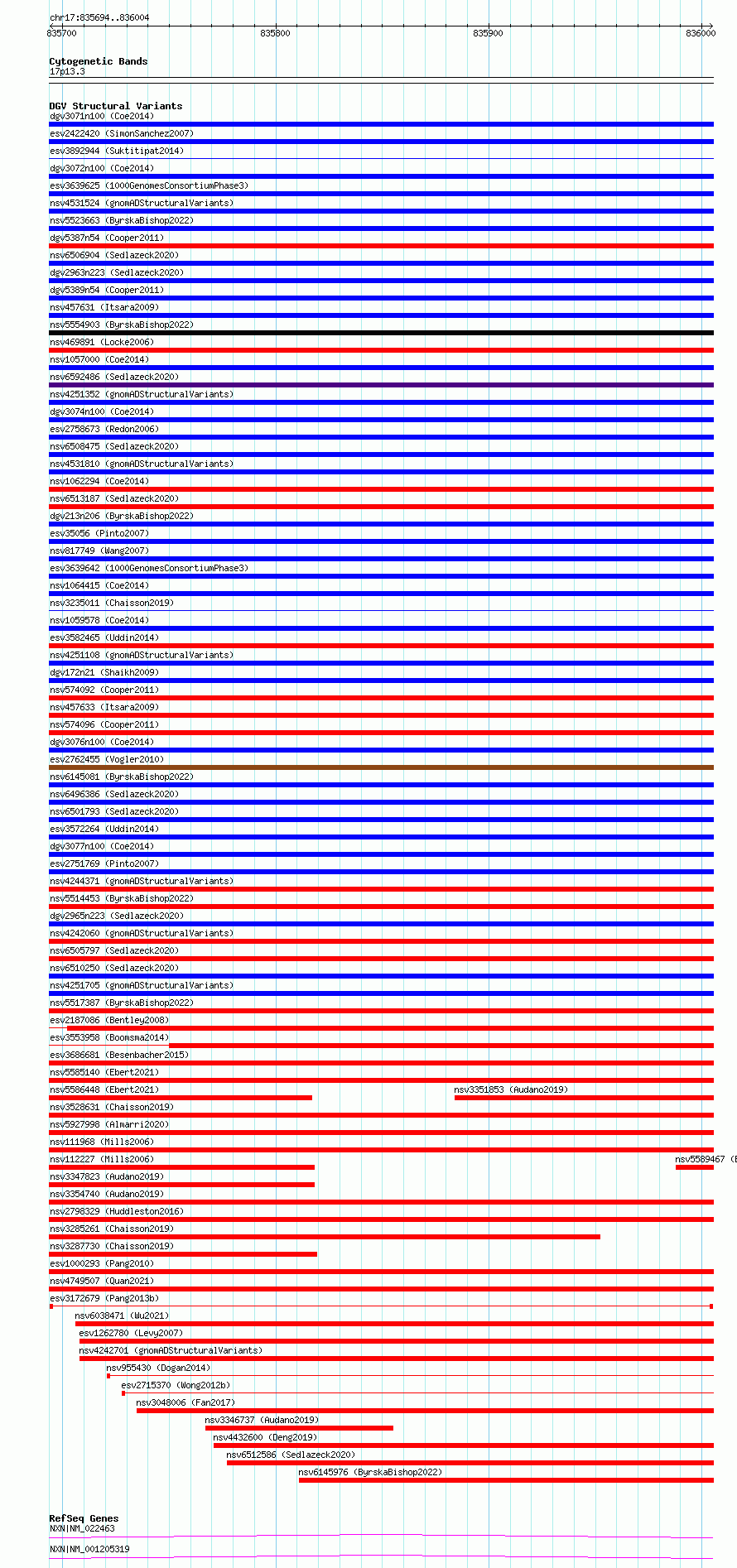 Variant DetailsVariant: esv3172679| Internal ID | 11192345 | | Landmark | | | Location Information | | | Cytoband | 17p13.3 | | Allele length | | Assembly | Allele length | | hg38 | 311 | | hg19 | 311 |