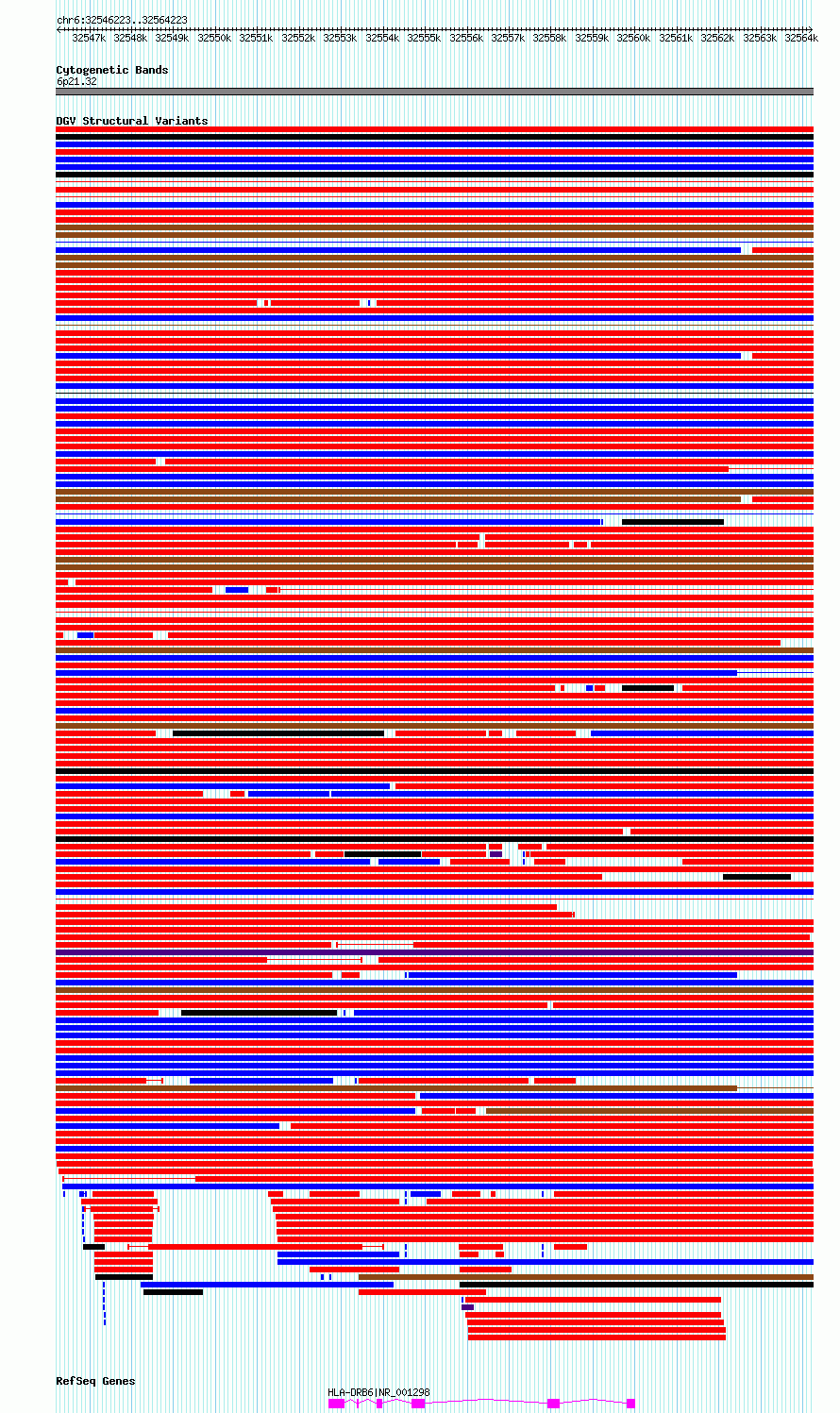 Variant DetailsVariant: esv3272273| Internal ID | 11291939 | | Landmark | | | Location Information | | | Cytoband | 6p21.32 | | Allele length | | Assembly | Allele length | | hg38 | 18001 | | hg19 | 18001 |