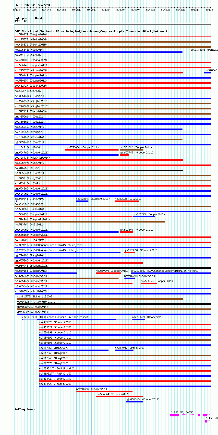 Variant DetailsVariant: esv32835 | Internal ID | 12964779 | | Landmark | | | Location Information | | | Cytoband | 19q13.42 | | Allele length | | Assembly | Allele length | | hg38 | 13192 | | hg19 | 13195 | | hg18 | 13195 | | hg17 | 13195 |