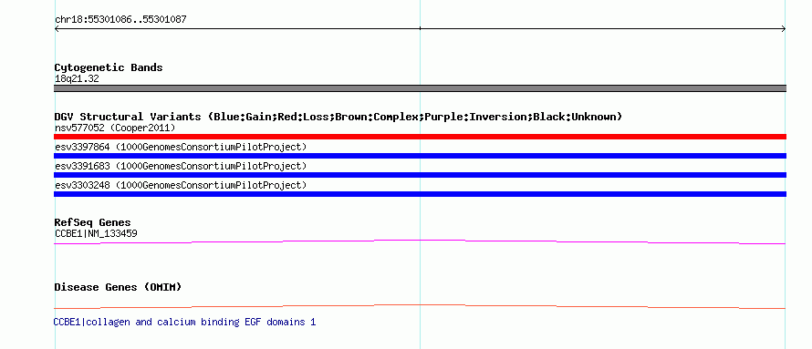 Variant DetailsVariant: esv3303248 | Internal ID | 15150196 | | Landmark | | | Location Information | | | Cytoband | 18q21.32 | | Allele length | | Assembly | Allele length | | hg38 | 313 | | hg19 | 313 | | hg18 | 313 |