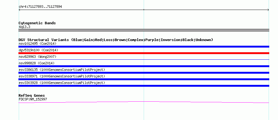 | | Variant Type | CNV mobile element insertion | | Copy Number | | | Allele State | | | Allele Origin | | | Probe Count | | | Validation Flag | | | Merged Status | M | | Merged Variants | | | Supporting Variants | essv7777080, essv7778785, essv7783644, essv7785049, essv7787402, essv7822562, essv7821138, essv7788081, essv7826961, essv7778354, essv7836494, essv7823640, essv7787321, essv7792604, essv7803875, essv7812907, essv7834631, essv7809136, essv7833325, essv7794376, essv7798385, essv7835951, essv7790738, essv7813745, essv7775623, essv7785807, essv7818818, essv7781984, essv7810432, essv7774923 | | Samples | NA11830, NA18947, NA18980, NA18561, NA18545, NA18526, NA18510, NA12750, NA07346, NA18563, NA19005, NA18944, NA18940, NA18558, NA18949, NA18970, NA18572, NA18537, NA12249, NA18532, NA18555, NA19225, NA18593, NA18945, NA18576, NA18608, NA18953, NA18961, NA07000, NA18522 | | Known Genes | FDCSP | | Method | Sequencing | | Analysis | | | Platform | Roche 454 | | Comments | | | Reference | 1000_Genomes_Consortium_Pilot_Project | | Pubmed ID | 20981092 | | Accession Number(s) | esv3303928