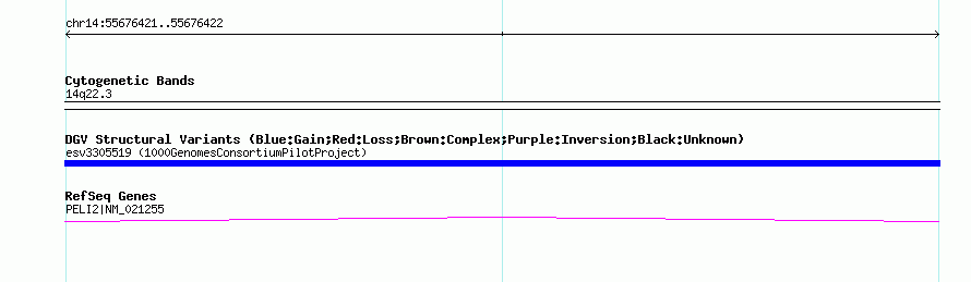 Variant DetailsVariant: esv3305519 | Internal ID | 15152467 | | Landmark | | | Location Information | | | Cytoband | 14q22.3 | | Allele length | | Assembly | Allele length | | hg38 | 179 | | hg19 | 179 | | hg18 | 179 |