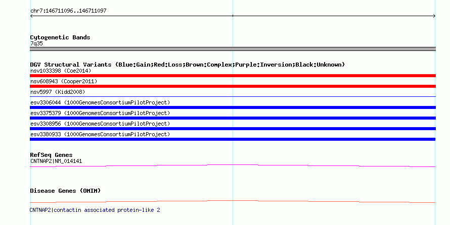 Variant DetailsVariant: esv3306044| Internal ID | 15152992 | | Landmark | | | Location Information | | | Cytoband | 7q35 | | Allele length | | Assembly | Allele length | | hg38 | 241 | | hg19 | 241 | | hg18 | 241 |