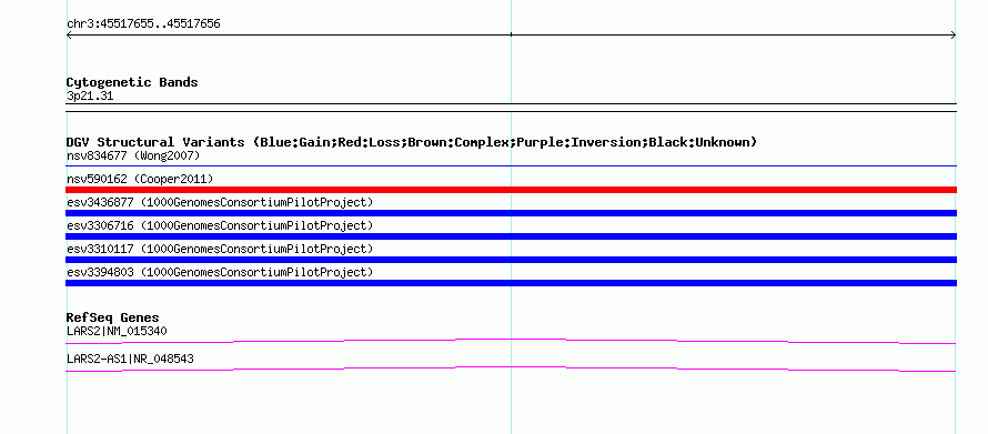 | | Variant Type | CNV mobile element insertion | | Copy Number | | | Allele State | | | Allele Origin | | | Probe Count | | | Validation Flag | | | Merged Status | M | | Merged Variants | | | Supporting Variants | essv7828573, essv7780852, essv7830306, essv7778892, essv7801301, essv7797452, essv7780103, essv7783899, essv7823869, essv7836195, essv7811621, essv7809699, essv7803460, essv7829398, essv7795028, essv7808596, essv7819692, essv7785134, essv7793562, essv7783001, essv7796083, essv7824737, essv7792925, essv7808648, essv7788687, essv7787199, essv7774283, essv7778206, essv7774934, essv7775896, essv7772628, essv7815088, essv7770124, essv7776689, essv7771736, essv7784793, essv7779331, essv7821281, essv7827174, essv7807987, essv7816809, essv7771370, essv7791691, essv7789134, essv7834005, essv7802862, essv7814489, essv7813069, essv7799007, essv7801828, essv7785715, essv7795320, essv7820728, essv7817742, essv7833555, essv7826922, essv7796763, essv7806829, essv7821587, essv7800972, essv7782411, essv7805120, essv7807403, essv7822177, essv7781311, essv7830470, essv7815656, essv7787494, essv7811113, essv7824501, essv7834959, essv7812495, essv7822797, essv7809381, essv7793854, essv7776158, essv7781748, essv7790852, essv7773993, essv7794398, essv7827634, essv7813930, essv7783527, essv7824954, essv7823645, essv7786637, essv7829097, essv7773268, essv7798321, essv7790450, essv7810617, essv7810170 | | Samples | NA12717, NA11830, NA18947, NA11995, NA18592, NA10851, NA18561, NA11920, NA11931, NA18603, NA12751, NA18545, NA12004, NA18959, NA18526, NA12750, NA12155, NA07357, NA07346, NA18563, NA19005, NA18944, NA18940, NA18550, NA12812, NA12891, NA18558, NA18960, NA18942, NA11992, NA07347, NA18582, NA12287, NA18964, NA18949, NA12156, NA12044, NA11994, NA18973, NA18638, NA11993, NA11831, NA18605, NA12489, NA12003, NA12878, NA12872, NA18956, NA18572, NA18948, NA18907, NA18537, NA18566, NA18573, NA18499, NA11894, NA11840, NA18856, NA12249, NA12892, NA18555, NA12144, NA18570, NA18593, NA18945, NA18576, NA12043, NA18542, NA12716, NA19108, NA18961, NA18952, NA19147, NA18564, NA12873, NA07051, NA18943, NA12874, NA07037, NA12763, NA06986, NA12749, NA19093, NA18609, NA18552, NA12006, NA07000, NA12154, NA18562, NA12776, NA18965, NA18577 | | Known Genes | LARS2, LARS2-AS1 | | Method | Sequencing | | Analysis | | | Platform | Roche 454 | | Comments | | | Reference | 1000_Genomes_Consortium_Pilot_Project | | Pubmed ID | 20981092 | | Accession Number(s) | esv3306716