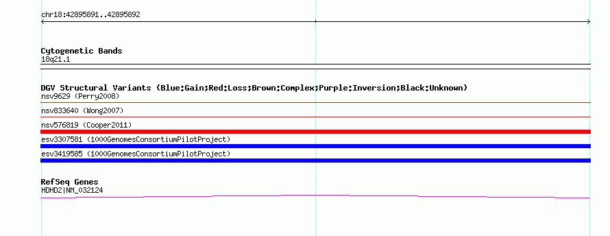 Variant DetailsVariant: esv3307581| Internal ID | 15154529 | | Landmark | | | Location Information | | | Cytoband | 18q21.1 | | Allele length | | Assembly | Allele length | | hg38 | 160 | | hg19 | 160 | | hg18 | 160 |