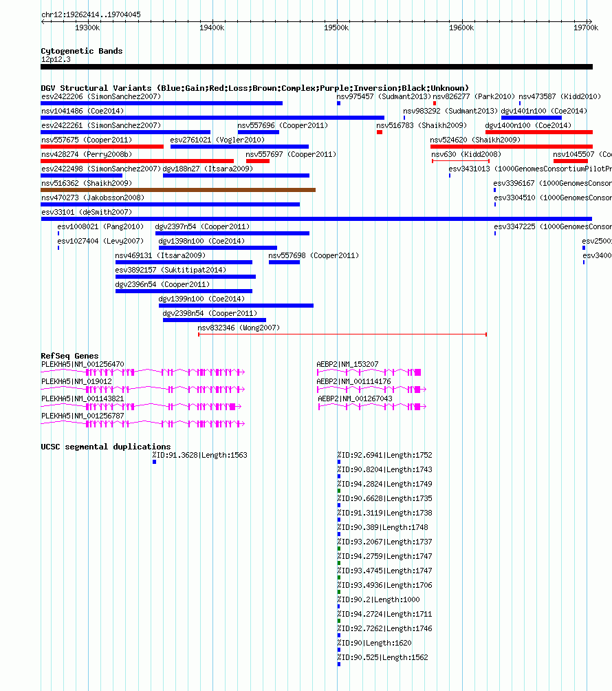 Variant DetailsVariant: esv33101 Internal ID | 12618359 | Landmark | | Location Information | | Cytoband | 12p12.3 | Allele length | Assembly | Allele length | hg38 | 441632 | hg19 | 441632 | hg18 | 441632 | hg17 | 441632 |