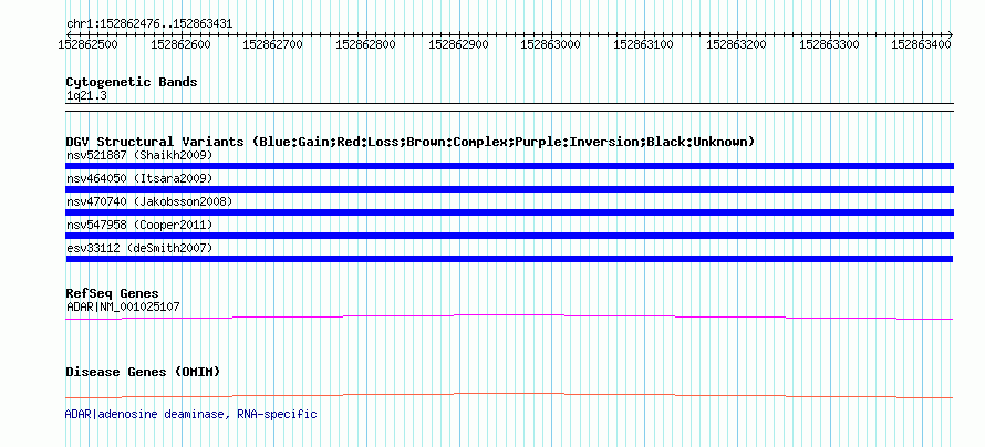 Variant DetailsVariant: esv33112 | Internal ID | 12965056 | | Landmark | | | Location Information | | | Cytoband | 1q21.3 | | Allele length | | Assembly | Allele length | | hg38 | 956 | | hg19 | 956 | | hg18 | 956 | | hg17 | 956 |