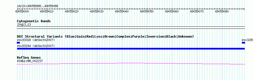 Variant DetailsVariant: esv33244 | Internal ID | 12618502 | | Landmark | | | Location Information | | | Cytoband | 20q13.13 | | Allele length | | Assembly | Allele length | | hg38 | 91 | | hg19 | 91 | | hg18 | 91 | | hg17 | 91 |