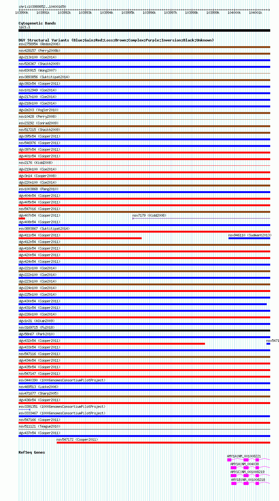 Variant DetailsVariant: esv3333467| Internal ID | 15180454 | | Landmark | | | Location Information | | | Cytoband | 1p21.1 | | Allele length | | Assembly | Allele length | | hg38 | 11799 | | hg19 | 11799 | | hg18 | 11799 |