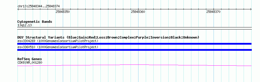 | | Variant Type | CNV insertion | | Copy Number | | | Allele State | | | Allele Origin | | | Probe Count | | | Validation Flag | | | Merged Status | M | | Merged Variants | | | Supporting Variants | essv8959429, essv8959432, essv8959430, essv8959427, essv8959431, essv8959428 | | Samples | NA18861, NA18489, NA18516, NA18499, NA18858, NA19093 | | Known Genes | CDK8 | | Method | Sequencing | | Analysis | | | Platform | Illumina | | Comments | | | Reference | 1000_Genomes_Consortium_Pilot_Project | | Pubmed ID | 20981092 | | Accession Number(s) | esv3360510