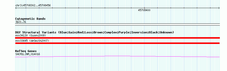 Variant DetailsVariant: esv33645 | Internal ID | 12618903 | | Landmark | | | Location Information | | | Cytoband | 3p21.31 | | Allele length | | Assembly | Allele length | | hg38 | 155 | | hg19 | 155 | | hg18 | 155 | | hg17 | 155 |