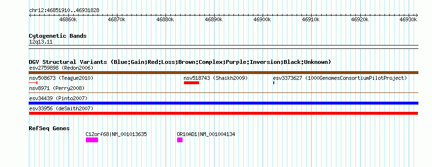 Variant DetailsVariant: esv33956 | Internal ID | 12965900 | | Landmark | | | Location Information | | | Cytoband | 12q13.11 | | Allele length | | Assembly | Allele length | | hg38 | 79919 | | hg19 | 79919 | | hg18 | 79919 | | hg17 | 79919 |