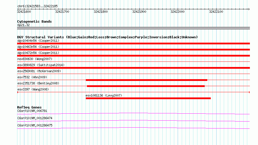 Outerchr6:32421583..32422185hg18UCSC Ensembl