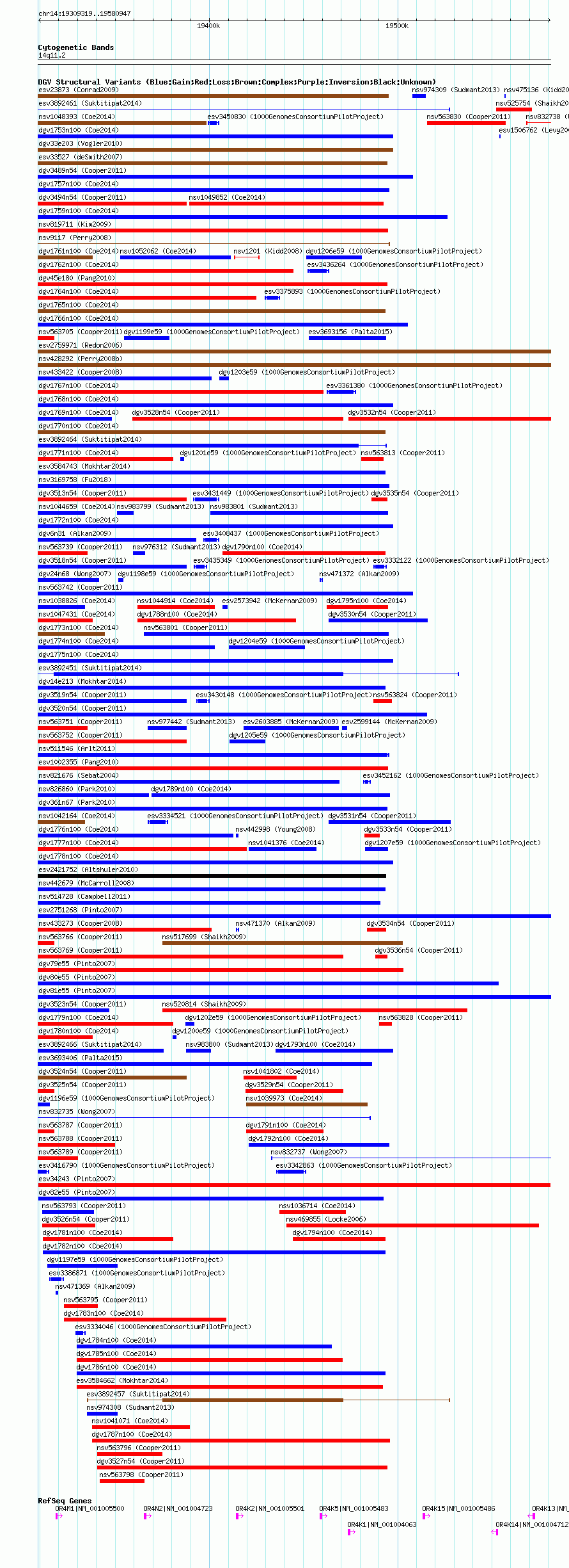 Variant DetailsVariant: esv34243| Internal ID | 12990282 | | Landmark | | | Location Information | | | Cytoband | 14q11.2 | | Allele length | | Assembly | Allele length | | hg38 | 271629 | | hg19 | 271629 | | hg18 | 271629 | | hg17 | 271629 |