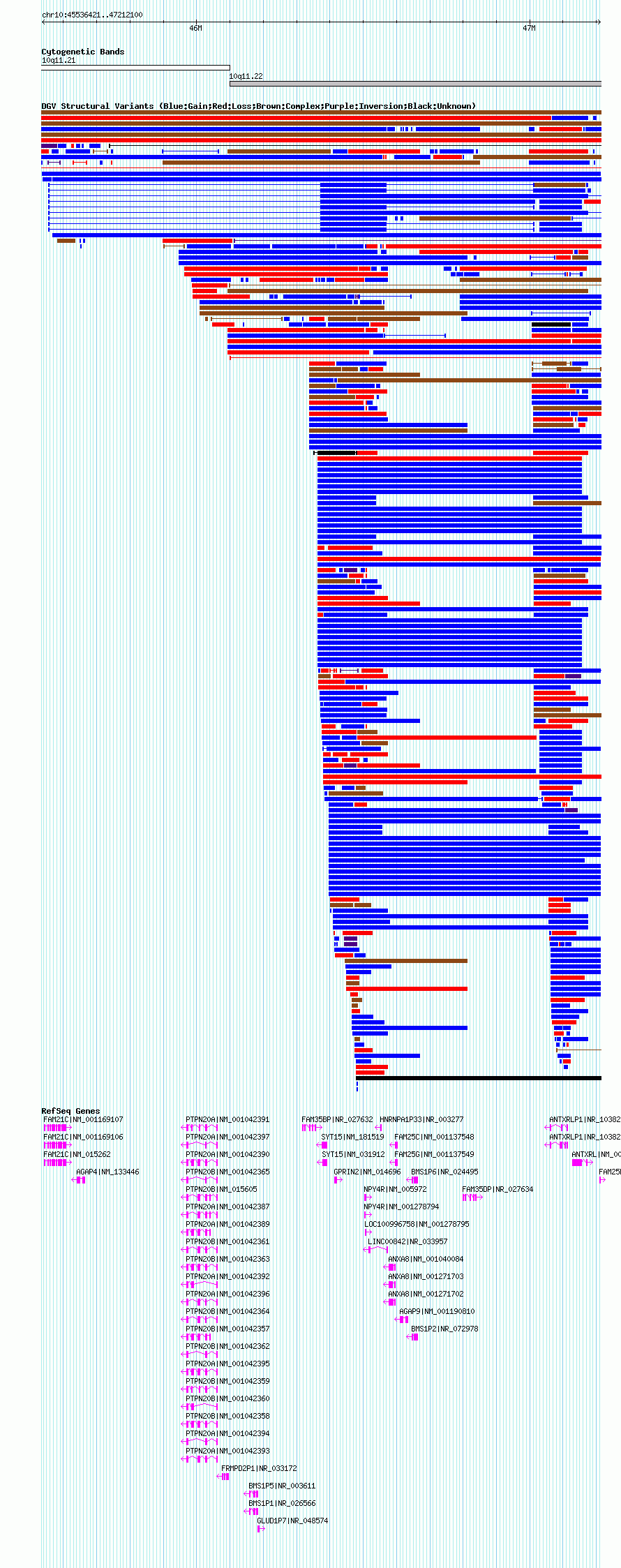 | | Variant Type | CNV gain | | Copy Number | | | Allele State | | | Allele Origin | | | Probe Count | | | Validation Flag | | | Merged Status | M | | Merged Variants | | | Supporting Variants | essv6980015, essv6986995, essv6980014, essv6980018, essv6990434, essv6980017, essv6986996, essv6980016 | | Samples | NA18940 | | Known Genes | AGAP4, AGAP9, ANTXRL, ANTXRLP1, ANXA8, BMS1P1, BMS1P2, BMS1P5, BMS1P6, FAM21C, FAM25B, FAM25C, FAM25G, FAM35BP, FAM35DP, FRMPD2P1, GLUD1P7, GPRIN2, HNRNPA1P33, LINC00842, LOC100996758, NPY4R, PTPN20A, PTPN20B, SYT15 | | Method | SNP array | | Analysis | | | Platform | Affymetrix Mapping 250K Nsp SNP Array Affymetrix Mapping 250K Sty2 SNP Array | | Comments | Sample level SV from stringent call set | | Reference | Pinto_et_al_2007 | | Pubmed ID | 17911159 | | Accession Number(s) | esv34875