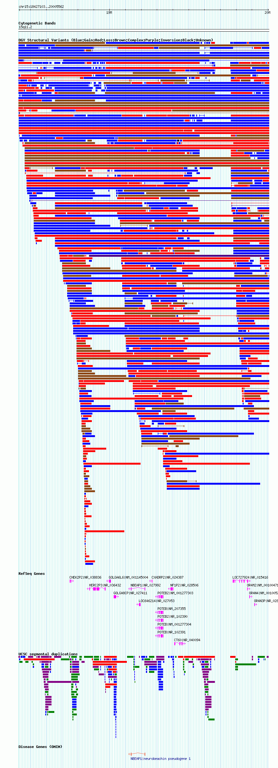 Variant DetailsVariant: esv35166| Internal ID | 12644516 | | Landmark | | | Location Information | | | Cytoband | 15q11.1 | | Allele length | | Assembly | Allele length | | hg38 | 2254412 | | hg19 | 2337110 | | hg18 | 1578460 | | hg17 | 1578460 |