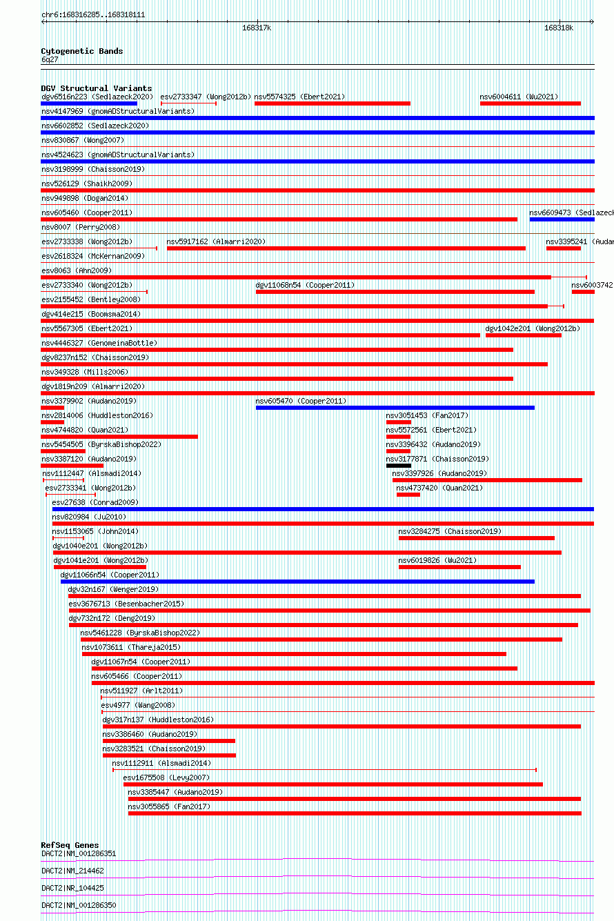 Variant DetailsVariant: esv3540908| Internal ID | 18741984 | | Landmark | | | Location Information | | | Cytoband | 6q27 | | Allele length | | Assembly | Allele length | | hg38 | 1827 | | hg19 | 1827 |