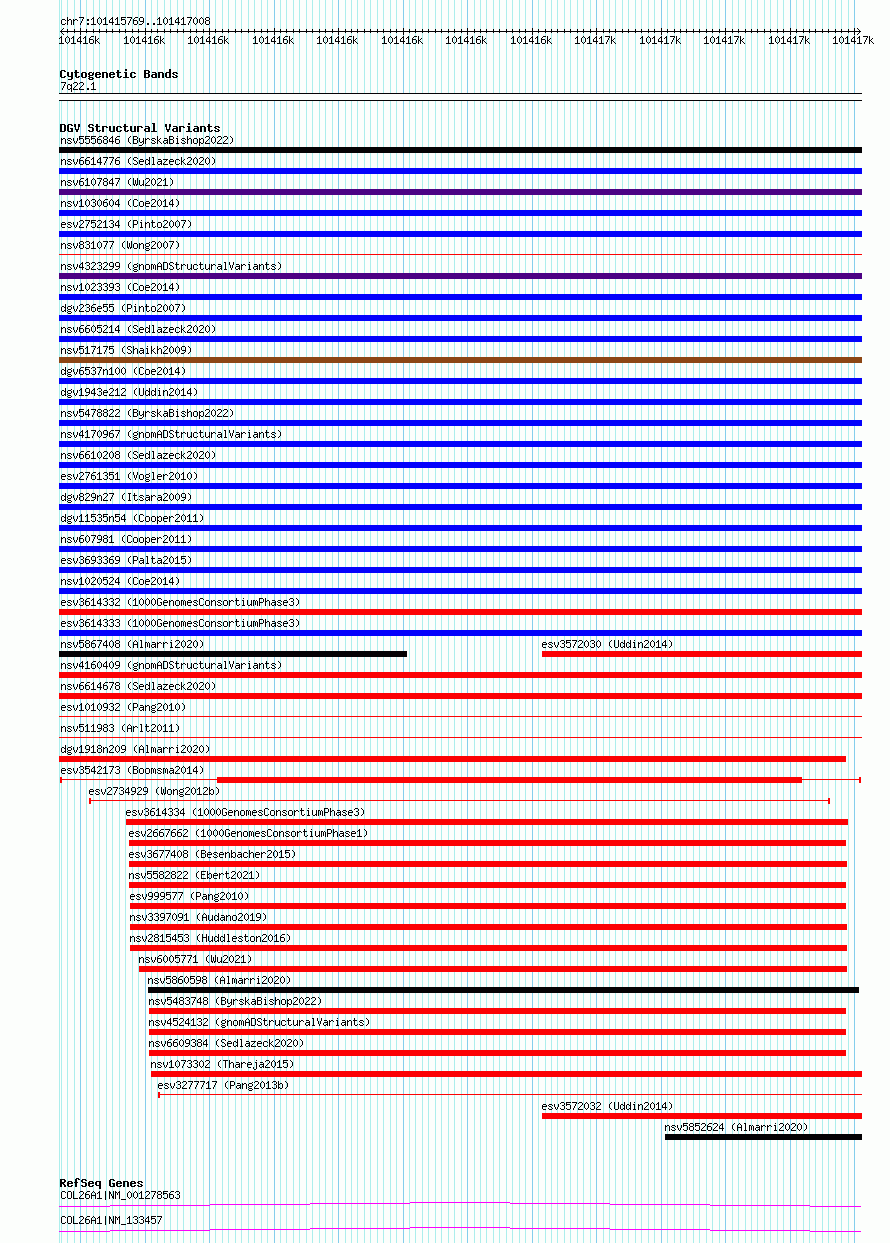 Variant DetailsVariant: esv3542173| Internal ID | 18743249 | | Landmark | | | Location Information | | | Cytoband | 7q22.1 | | Allele length | | Assembly | Allele length | | hg38 | 1240 | | hg19 | 1240 |