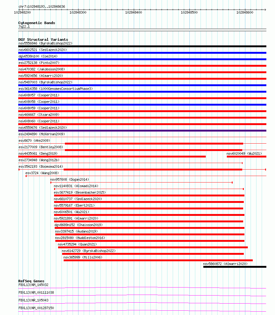 Variant DetailsVariant: esv3542193| Internal ID | 18743269 | | Landmark | | | Location Information | | | Cytoband | 7q22.1 | | Allele length | | Assembly | Allele length | | hg38 | 444 | | hg19 | 444 |