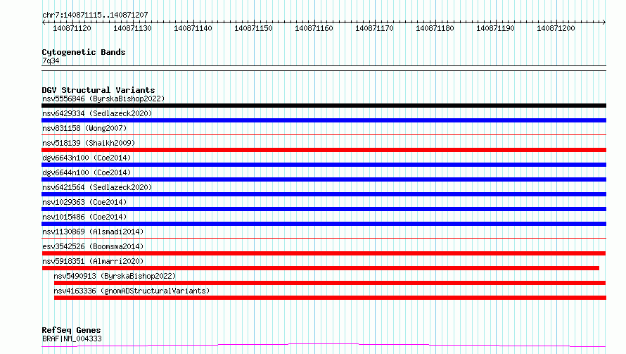 Variant DetailsVariant: esv3542526| Internal ID | 18743602 | | Landmark | | | Location Information | | | Cytoband | 7q34 | | Allele length | | Assembly | Allele length | | hg38 | 93 | | hg19 | 93 |