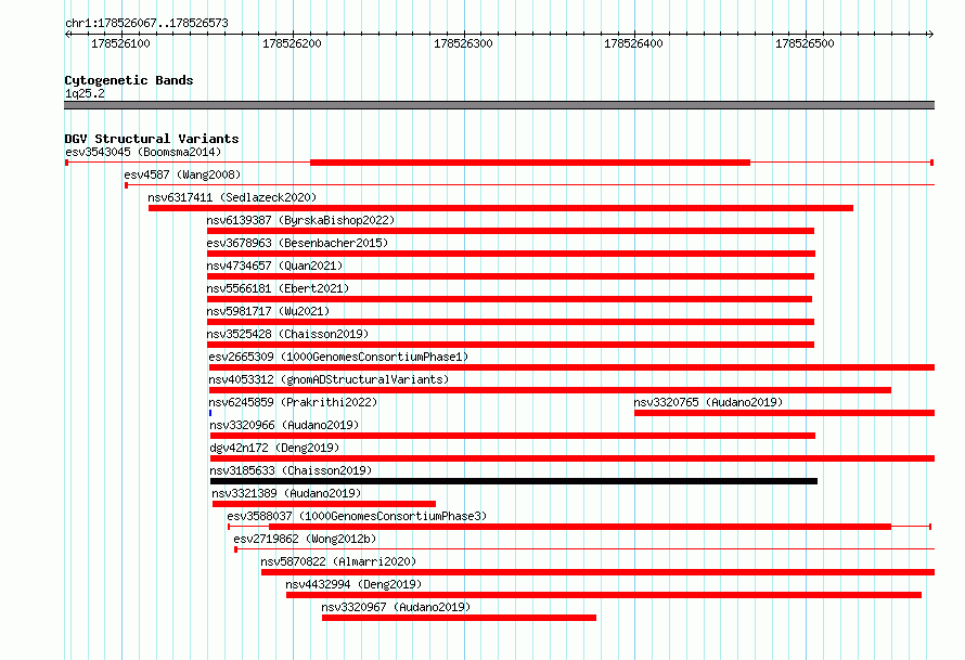 Variant DetailsVariant: esv3543045| Internal ID | 18744121 | | Landmark | | | Location Information | | | Cytoband | 1q25.2 | | Allele length | | Assembly | Allele length | | hg38 | 507 | | hg19 | 507 |