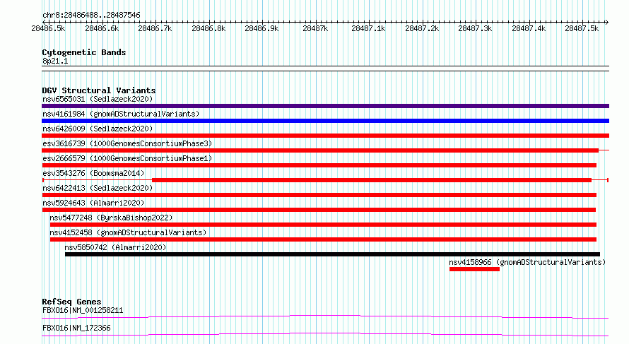Variant DetailsVariant: esv3543276| Internal ID | 18744352 | | Landmark | | | Location Information | | | Cytoband | 8p21.1 | | Allele length | | Assembly | Allele length | | hg38 | 1059 | | hg19 | 1059 |