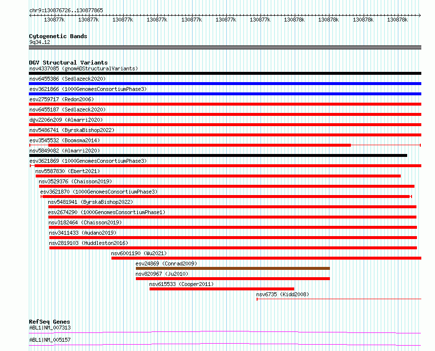 Variant DetailsVariant: esv3545532| Internal ID | 18746608 | | Landmark | | | Location Information | | | Cytoband | 9q34.12 | | Allele length | | Assembly | Allele length | | hg38 | 1140 | | hg19 | 1140 |