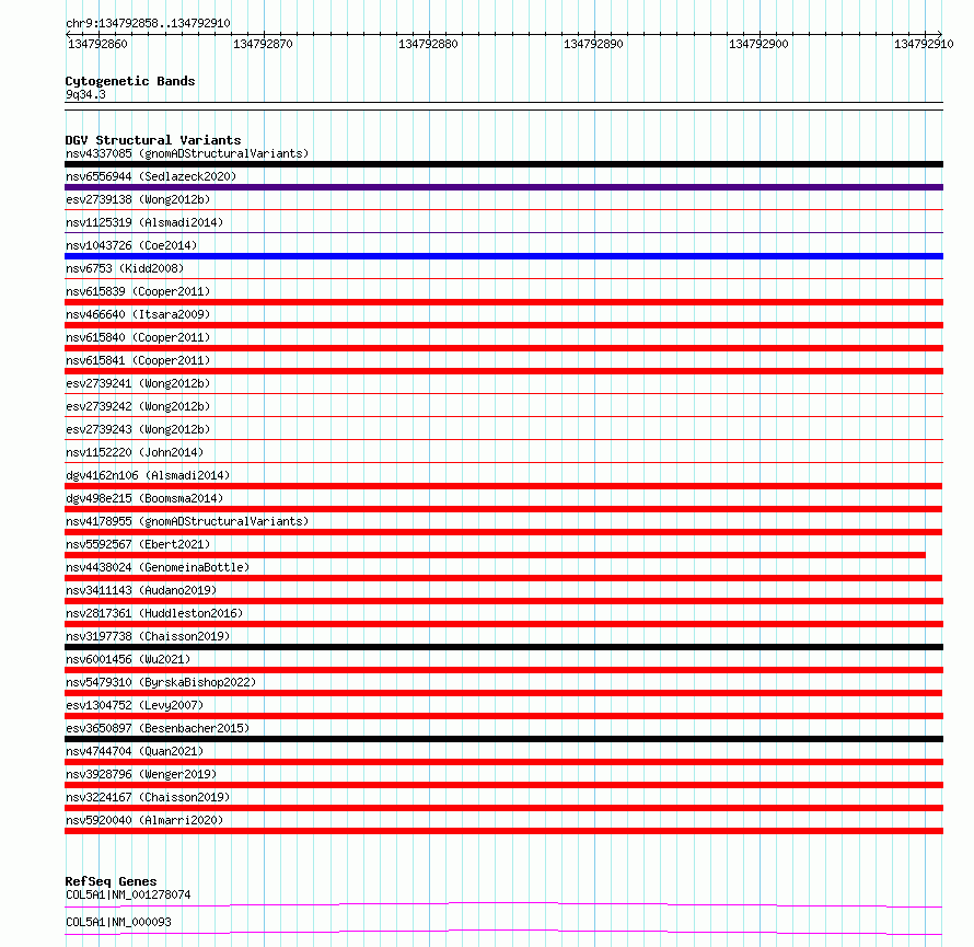 Variant DetailsVariant: esv3545603| Internal ID | 18746679 | | Landmark | | | Location Information | | | Cytoband | 9q34.3 | | Allele length | | Assembly | Allele length | | hg38 | 53 | | hg19 | 53 |